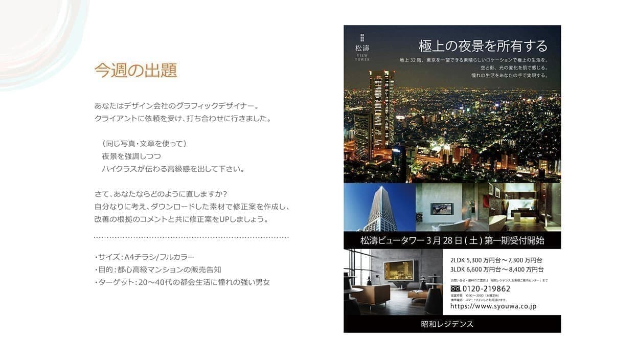 - 目的:都心高級マンションの販売告知